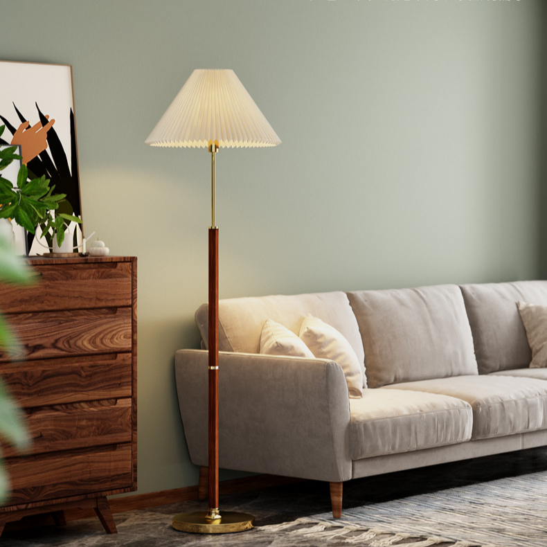 HVORFOR VÆLGE DEN ELEGANTE GULVLAMPE MED PLISSERET LAMPSKÆRM — VARMT LYS TIL STUEN?